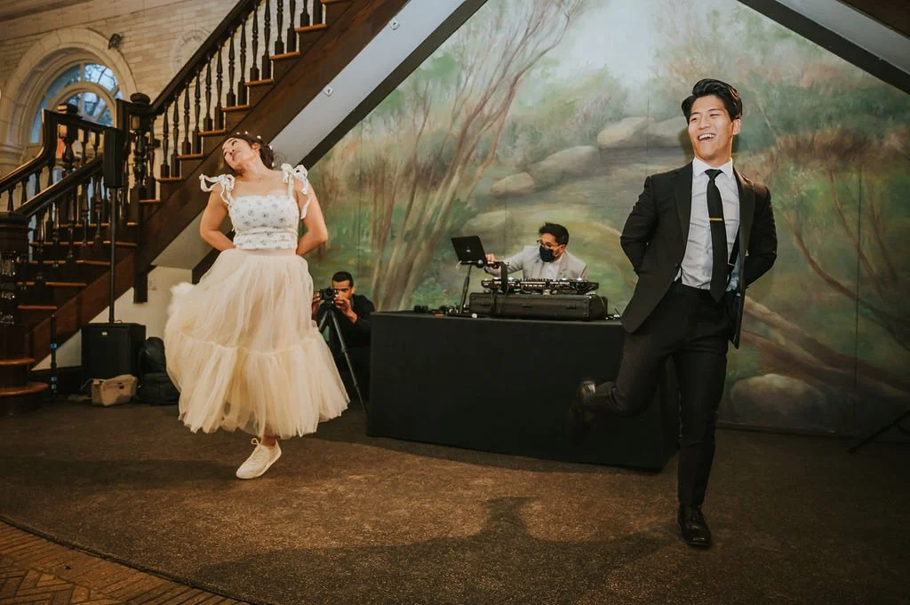 Sayri and Fred's wedding at The Prospect Park Boathouse was a feast of color, quirk and fun! With bright and festive wedding party attire, colorful pops of flowers from Snowdrop Flowers and limitless fun surprises for guests including bubbles, a serenade of "Grow Old With You" from the bride on ukulele, and a choreographed first dance that had the room melting. We just can't get enough of these two!