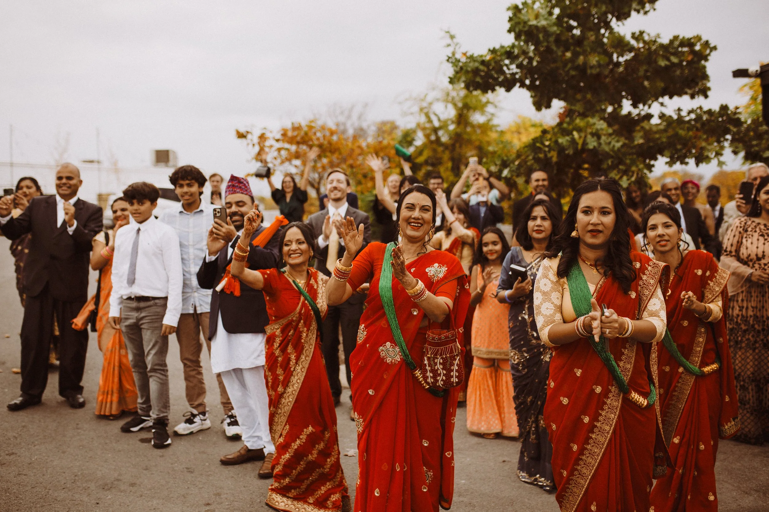 Neelu and Jack started their wedding with the Janti Processional, where the men danced, celebrated, and processed to the women before entering the ceremony space.